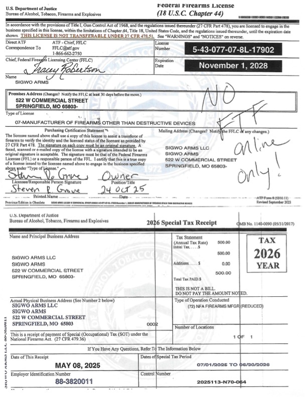 If this product requires an FFL to purchase, please have your preferred dealer email their FFL to FFL@sigwoarms.com and reference your name and order number so we may assign the FFL to the proper order. If this information is not submitted, shipping your order will be delayed. If you have non-FFL products in your cart during checkout, they will be shipped separately to an address of your choosing.